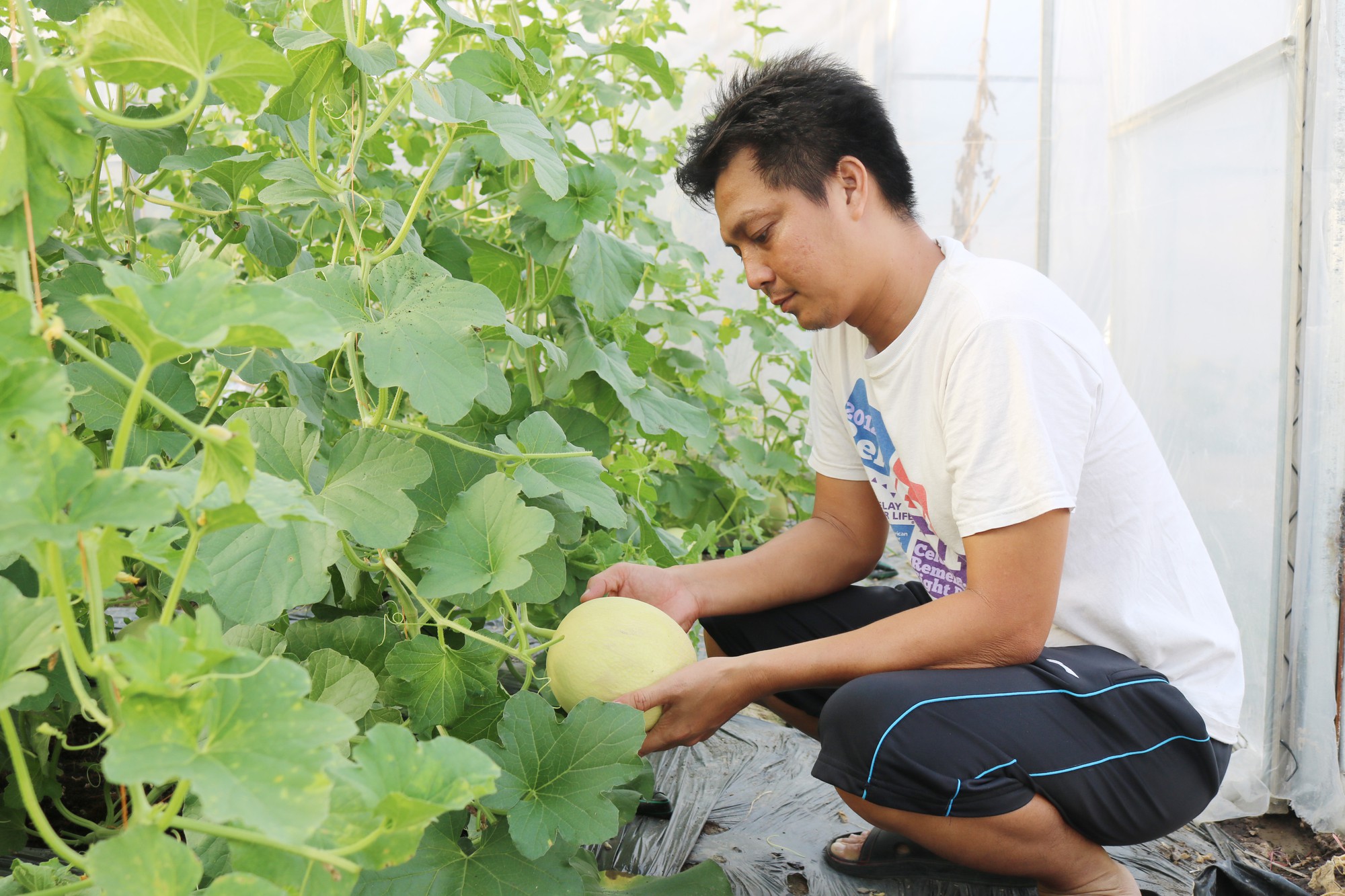 Anh Nguyễn Văn Phong (38 tuổi, công tác tại Trung tâm giáo dục thường xuyên quận Bình Thủy, Cần Thơ) với mô hình trồng dưa theo phương thức thủy canh, bán được giá cao và thu hút khách du lịch -